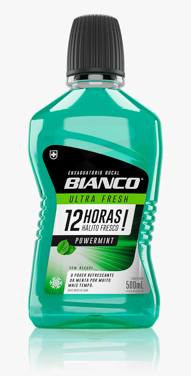 Experimente nosso Enxaguante Bucal BIANCO POWERMINT e descubra uma nova maneira de cuidar da sua saúde bucal com a segurança de um hálito fresco e duradouro.